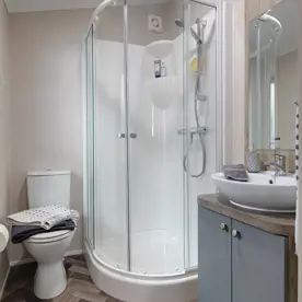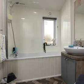 There is a large open plan living area with a flatscreen TV, dining area and fully equipped kitchen. The master bedroom features a king size bed, plenty of storage and a 14” TV. The twin bedroom offers two single beds. The spacious lodge includes a family bathroom with either shower and/or bath with overhead shower, washbasin and WC.