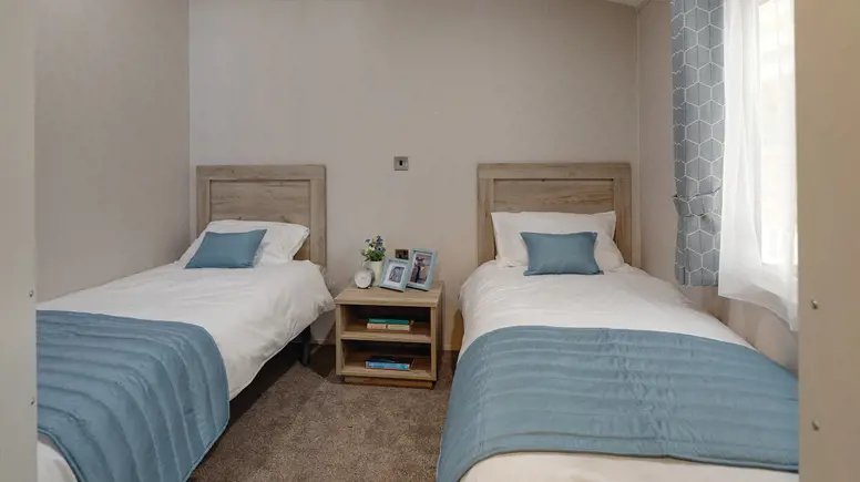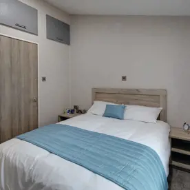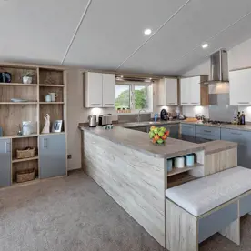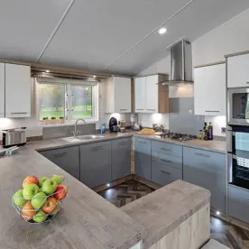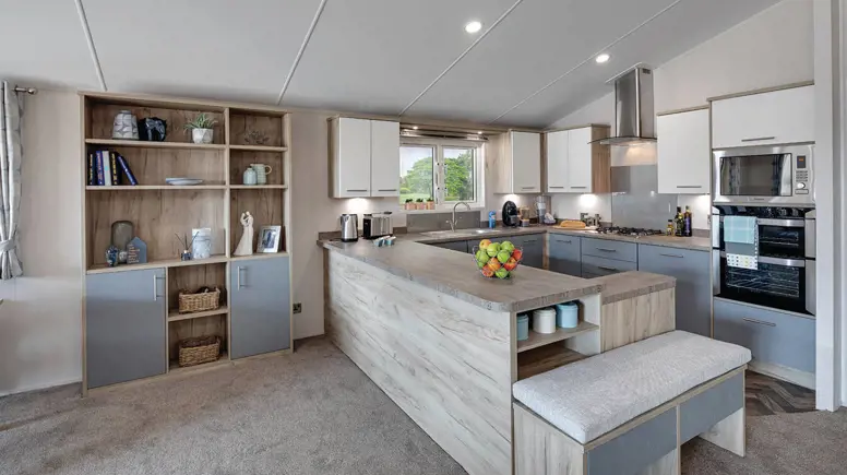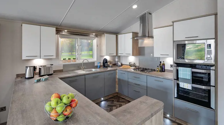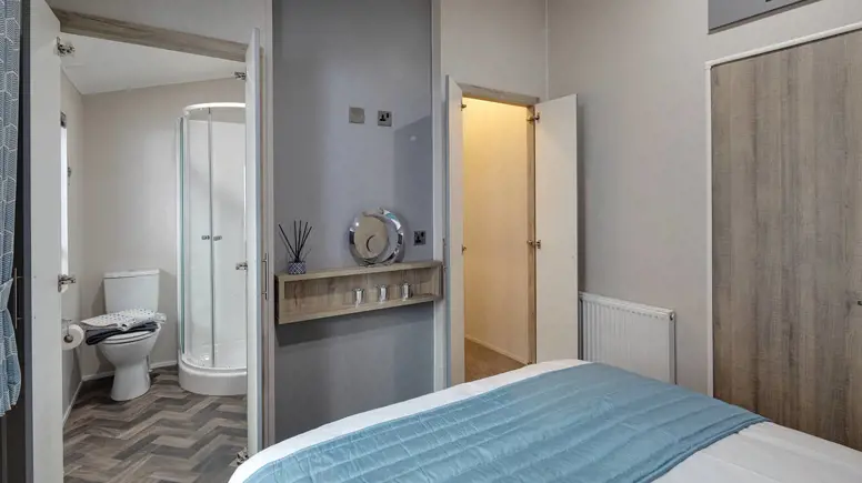 There is a large open plan living area with a flatscreen TV, dining area and fully equipped kitchen. The master bedroom features a king size bed, plenty of storage and a 14” TV. The twin bedroom offers two single beds. The spacious lodge includes a family bathroom with either shower and/or bath with overhead shower, washbasin and WC.
