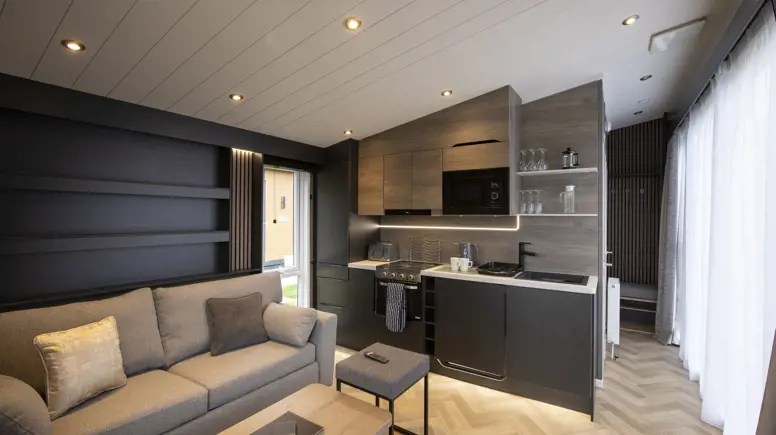 Step into the East Lothian countryside and into your perfect cosy staycation in The Hideout. With a sleek, stylish design, ingenious compact living and a stunning location amongst the East Lothian countryside, this is the ideal choice for a romantic retreat or family getaway.