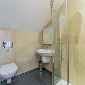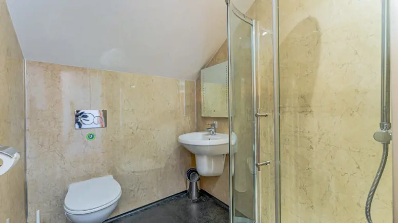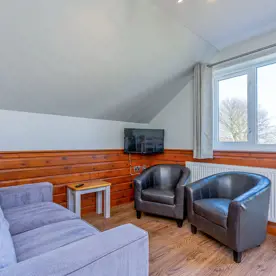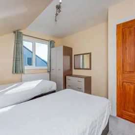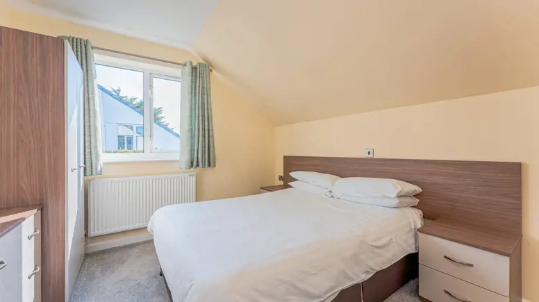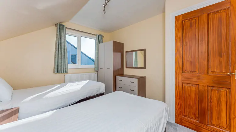 The master bedroom offers a double bed, the twin bedroom offers two single beds. There’s a spacious family shower room with sink and WC.