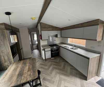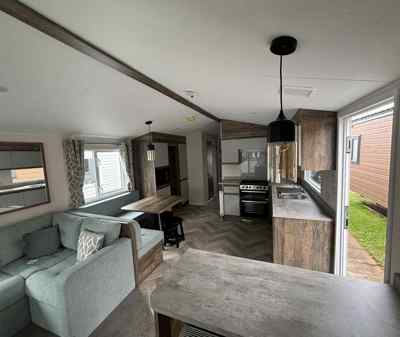 The brand-new Willerby Brookwood 38x12 is an incredible holiday home, offering a stylish modern interior and a spacious open-plan layout. The living area features comfortable fixed seating and a dedicated dining space, perfect for relaxing or entertaining.