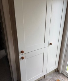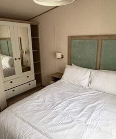 Inside, the open‑plan living area feels bright and inviting, with a modern electric fire, comfortable seating and large windows that draw in plenty of natural light. The well‑appointed kitchen includes a gas cooker, extractor, integrated fridge‑freezer and microwave, along with generous storage and worktop space. The master bedroom offers fitted wardrobes, a dressing area and an en‑suite WC with Bath, incredibly, while the twin bedroom provides comfortable sleeping and smart storage solutions.