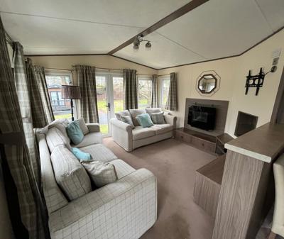 The Chorus is a bright, spacious holiday home with outlook doors which open into the living area. An open plan living dining area features an L-shaped sofa and modern fireplace, freestanding dining table and chairs, this model offers two very spacious bedrooms including an ensuite, and sleeps 6 when using the integrated living room sofa bed.