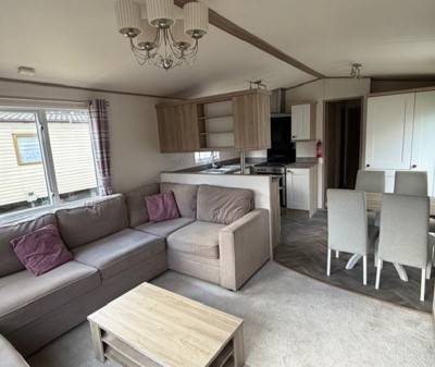 The Chorus is a bright, spacious holiday home with outlook doors which open into the living area. An open plan living dining area features an L-shaped sofa and modern fireplace, freestanding dining table and chairs, this model offers two very spacious bedrooms including an ensuite, and sleeps 6 when using the integrated living room sofa bed.