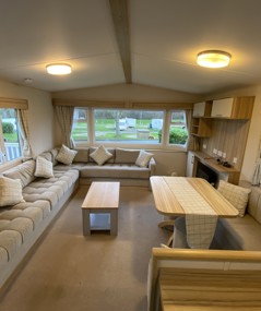 The lounge has a large, L-shaped sofa which provides lots of comfortable seating for the whole family. It also contains a fold-out bed which is great for extending the living space should you have family or friends staying with you.