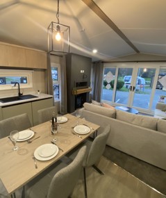 The Arlington, allows you to experience modern design made for real living. The kitchen steals the show with its soft wood finishes, bold black accents, and a layout perfect for prepping meals or catching up over coffee. The open-plan space flows into a living area anchored by an inviting sofa and cosy fireplace, ideal for unwinding after a day of exploring. The master bedroom is a sanctuary, complete with soothing tones and thoughtful details that promise total relaxation.