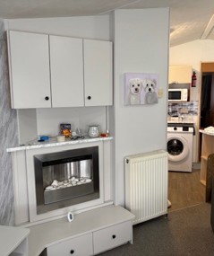 The 2010 Willerby Westmorland is a popular and well-designed static caravan made by Willerby, offering excellent comfort and practicality for families or first-time owners. Open-plan living space with wrap-around seating, plenty of storage, and a modern electric fire. The soft cream and brown tones create a warm, homely atmosphere. Fully equipped and practical, featuring ample counter space and an extra work surface that acts as a natural room divider.