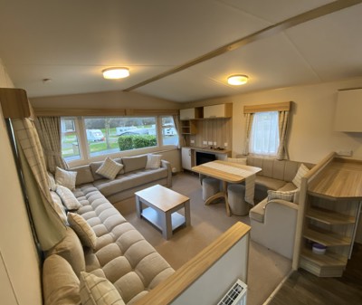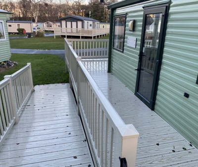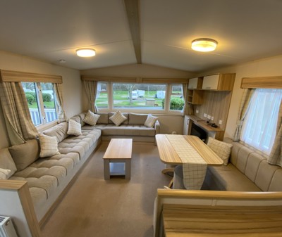 The 2011 Leven is contemporary and stylish throughout, decorated in a natural colour scheme with luxurious carpeting. It has vaulted ceilings throughout so your holiday home feels spacious and airy, and the distinctive 'cathedral style' windows in the lounge keep it light. With plenty of storage, modern decor intelligent use of space and storage throughout, the Leven is a luxurious choice of holiday home. Comes with large wrapround decking with mobility access.