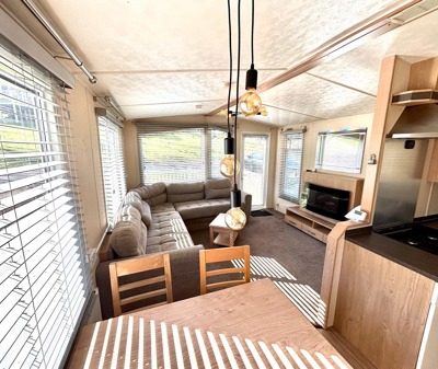 The ABI Coniston offers a classic and cosy holiday home feel, featuring a fixed seating area in the lounge and a free-standing dining table and chairs—perfect for relaxing or enjoying family meals.