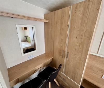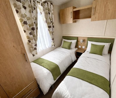 The 2011 Leven is contemporary and stylish throughout, decorated in a natural colour scheme with luxurious carpeting. It has vaulted ceilings throughout so your holiday home feels spacious and airy, and the distinctive 'cathedral style' windows in the lounge keep it light. With plenty of storage, modern decor intelligent use of space and storage throughout, the Leven is a luxurious choice of holiday home. Comes with large wrapround decking with mobility access.