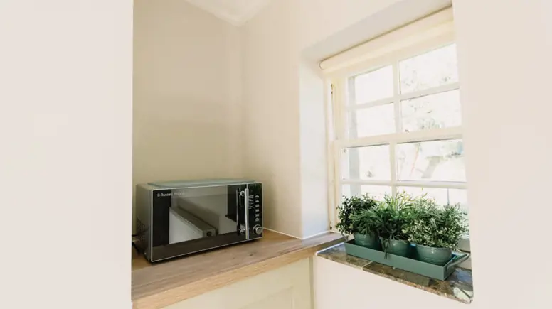 - Fully equipped kitchen with microwave and coffee maker