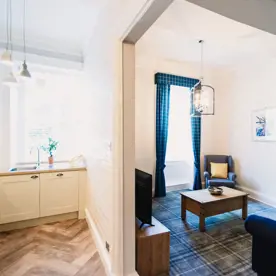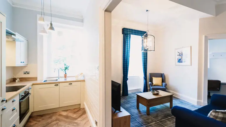 Located above the bar on the upper floor of Erigmore House, this modern and spacious 2-bedroom apartment comfortably sleeps five, perfect for the whole family.