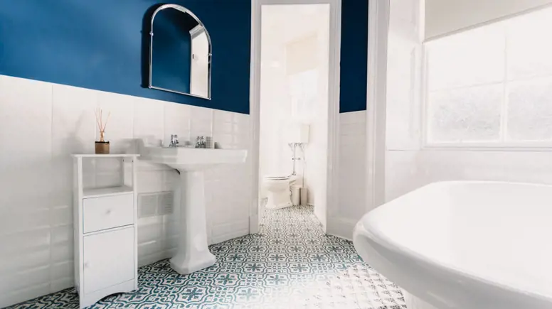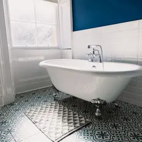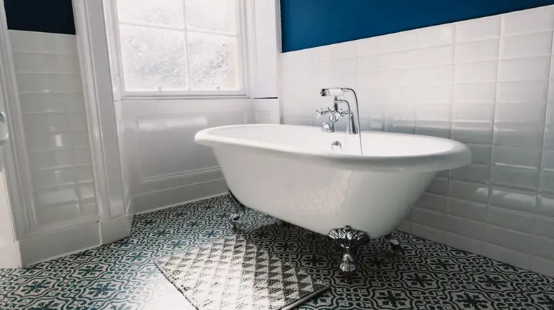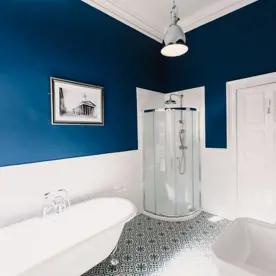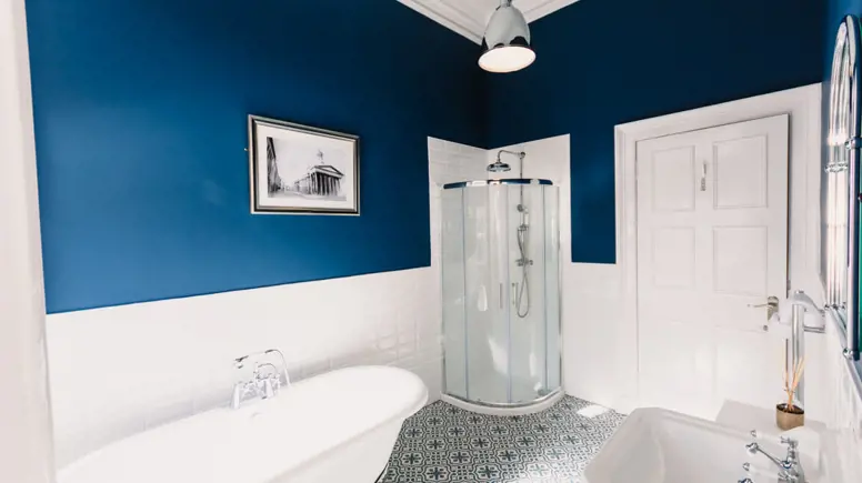 - Stylish bathroom with claw foot bath and walk in shower