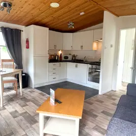 Our Fern Lodge is the obvious choice for couples looking for comfortable, affordable lodge accommodation with dog. Traditional in style throughout, our Fern Lodge is compact yet offers more than enough space for up to 2 guests and your pets. Completing the lodge is a spacious decking area, the perfect place to relax and enjoy the surroundings or enjoy al-fresco dining.