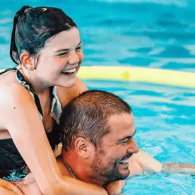 We have lifeguards on duty, and all activities are supported by trained staff in the pool, so you can be assured that you and your children will be as safe as possible while enjoying yourselves.